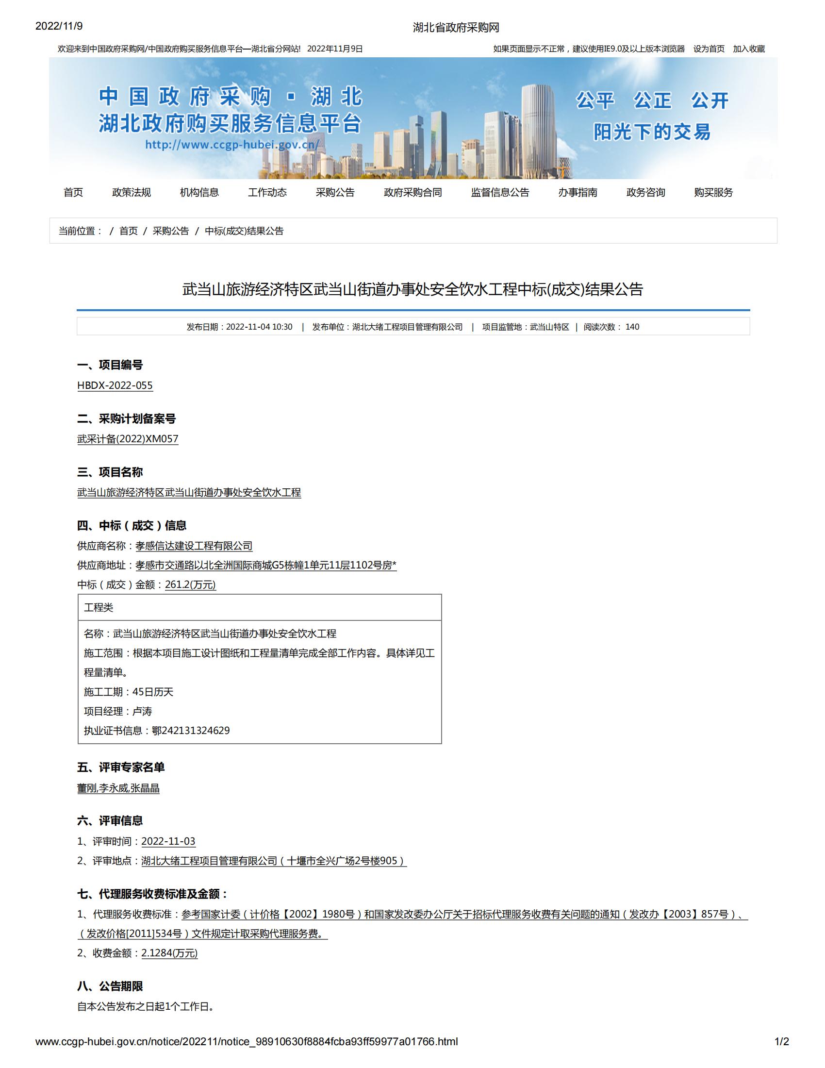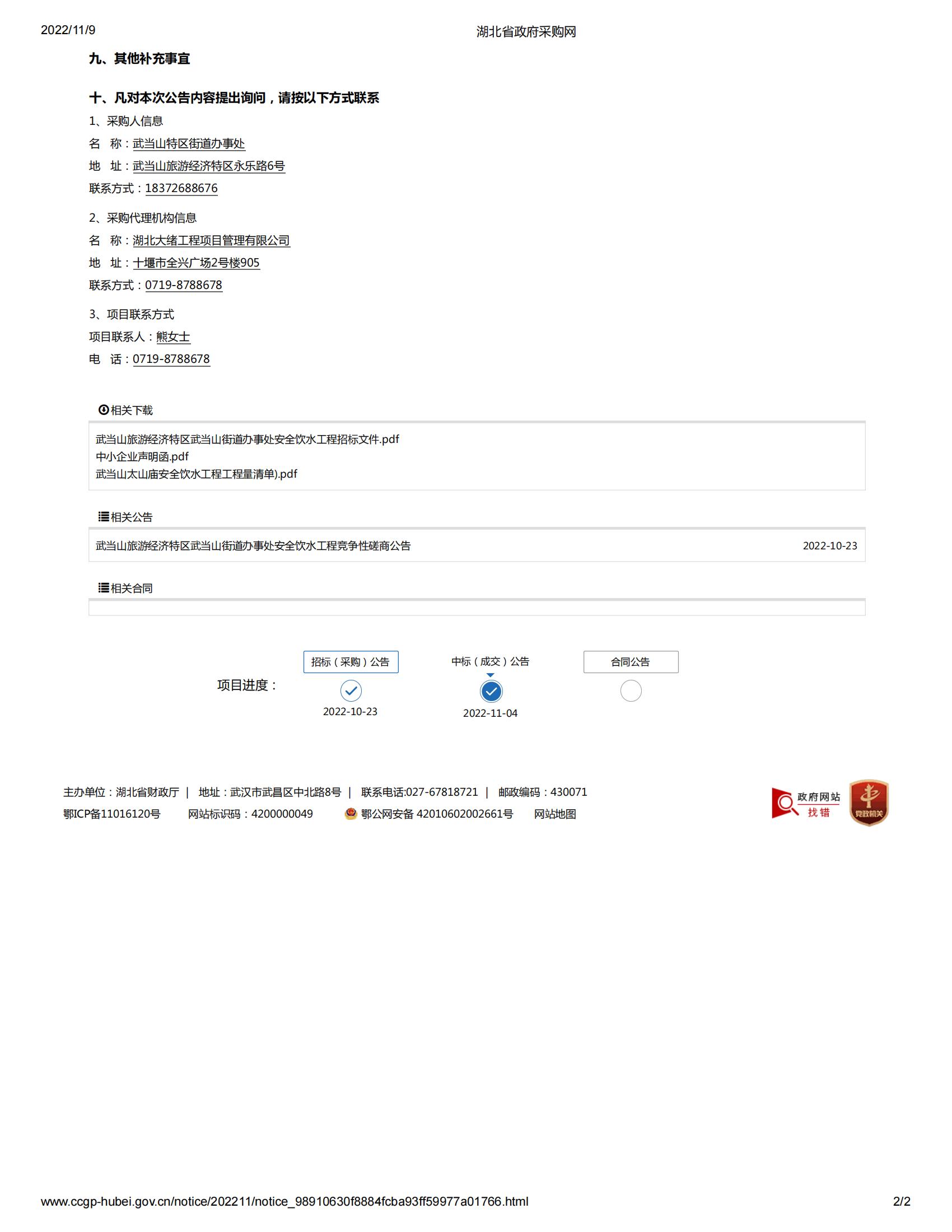 項目名稱:武當山旅游經(jīng)濟特區(qū)武當山街道辦事處安全飲水工程