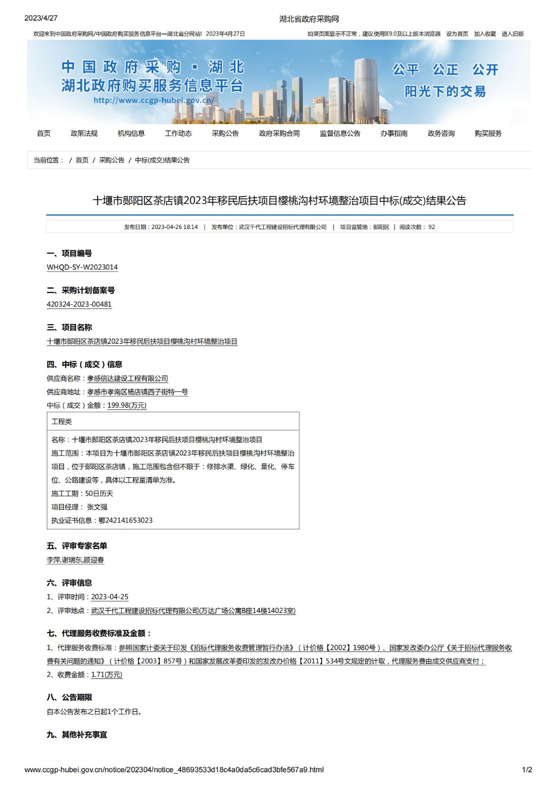 十堰市鄖陽區(qū)茶店鎮(zhèn)2023年移民后扶項(xiàng)目櫻桃溝村環(huán)境整治項(xiàng)目