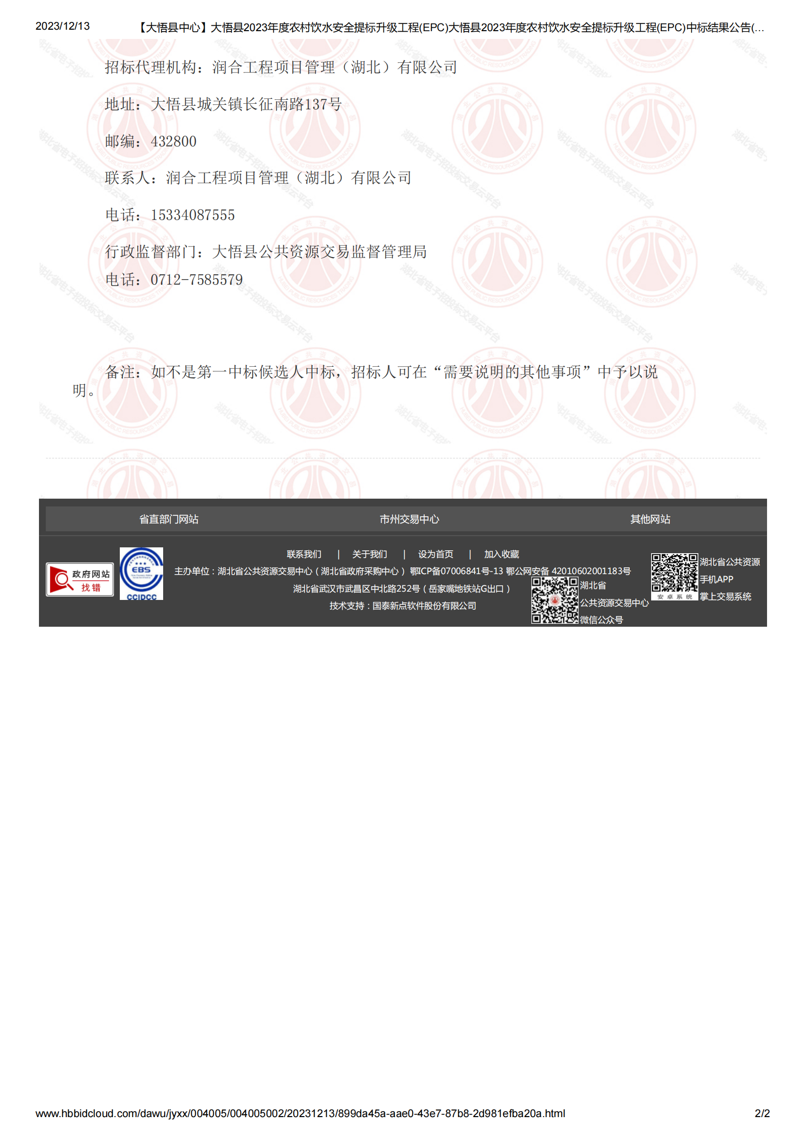 項目名稱:大悟縣2023年度農(nóng)村飲水安全提標(biāo)升級工程(EPC)