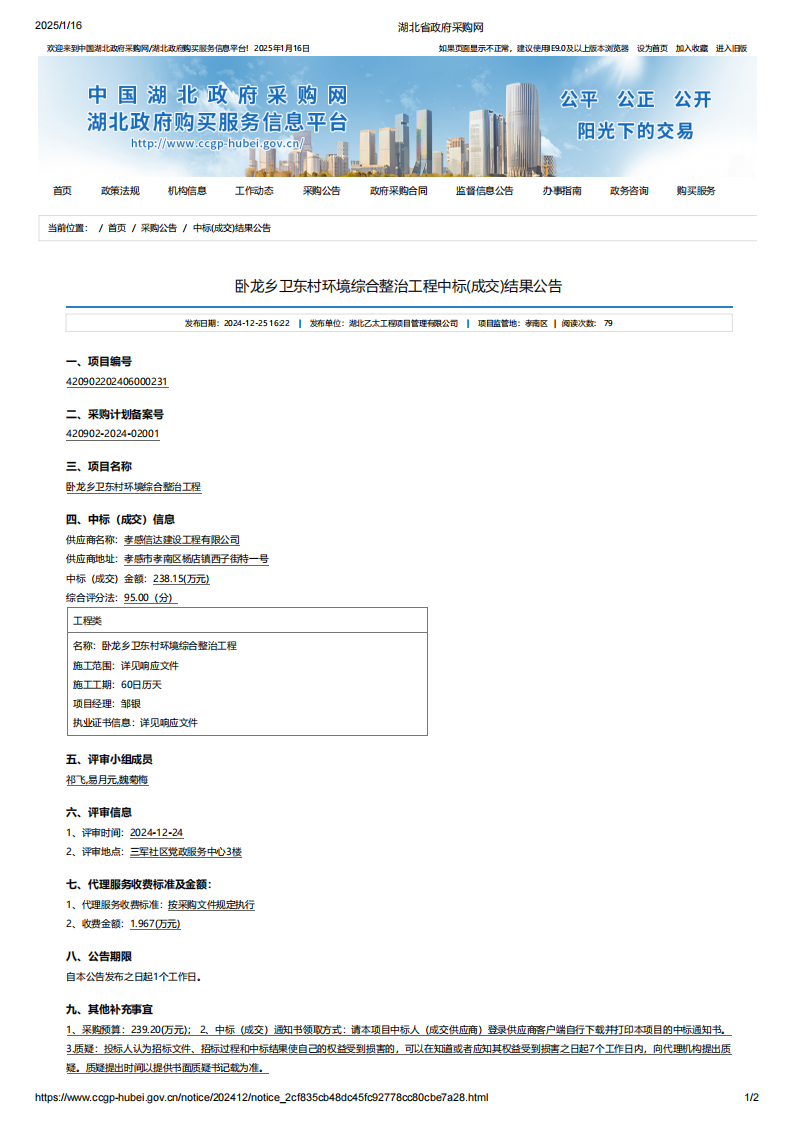 項(xiàng)目名稱:臥龍鄉(xiāng)衛(wèi)東村環(huán)境綜合整治工程