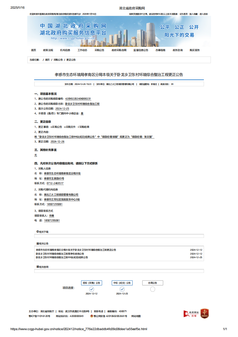項(xiàng)目法人:孝感市生態(tài)環(huán)境局孝南區(qū)分局